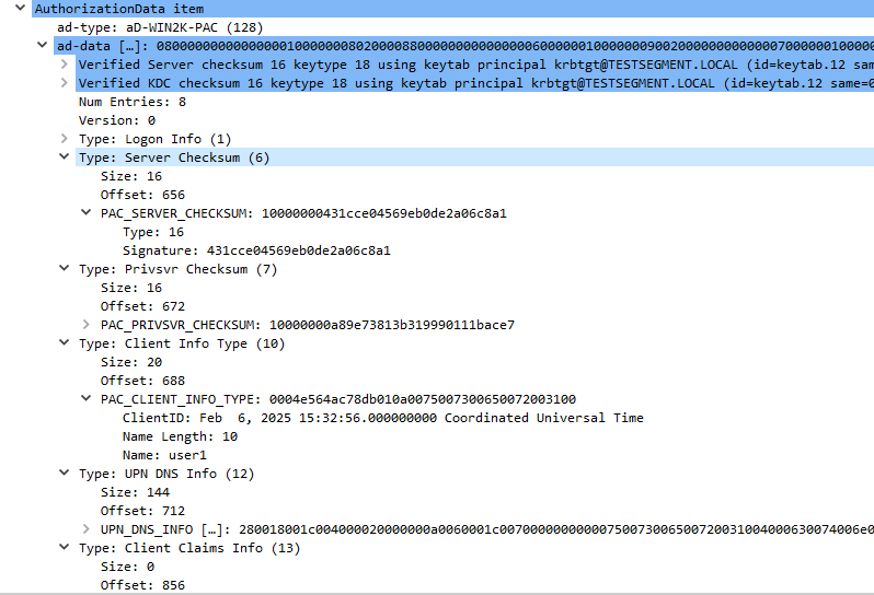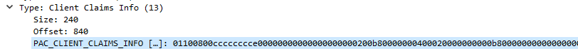 Here is an example of a the PAC of a user’s TGT (the client Claims Info field is empty in this case scenario)