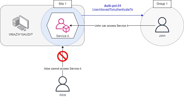 - In any case, AD group members cannot be assigned to a silo. But authentication policy can target groups (see [[## Examples of Authentication policy implementation]])